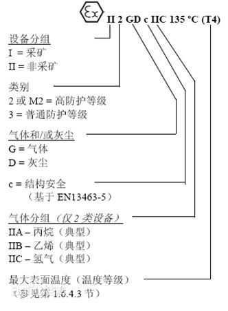 如果設備被用于20、21或22區,則類目數字后跟一字母D(粉塵):